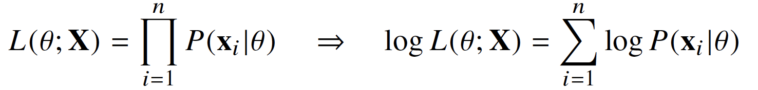 - 데이터 집합 X가 독립적으로 추출되었을 경우 로그가능도 최적화