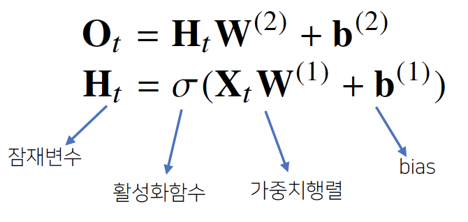 - 역전파: 잠재변수의 연결그래프에 따라 순차적으로 계산 → Backpropagation Through Time (BPTT)