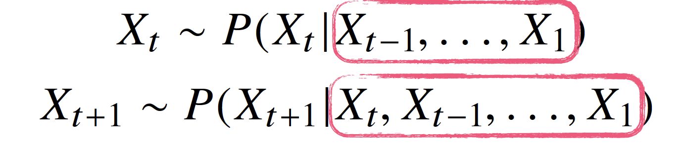 - 순서를 바꾸거나 과거 정보에 손실이 발생하면 확률분포도 바뀜