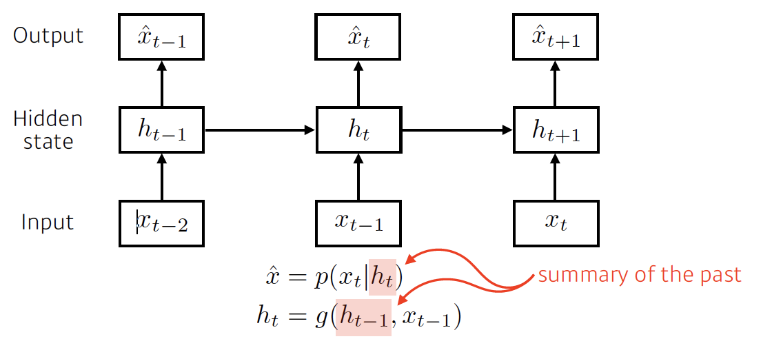 - 이전 순서의 잠재변수와 현재의 입력을 활용하여 모델링