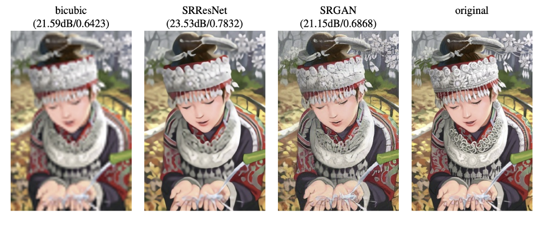 Output: High resolution image - MAE/MSE: pixel intensity difference 측정, 여러 패치들 존재