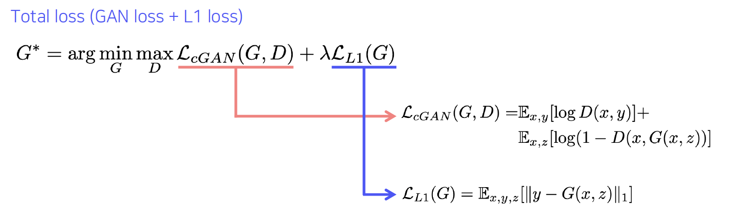 L1 loss: 회색 output 생성