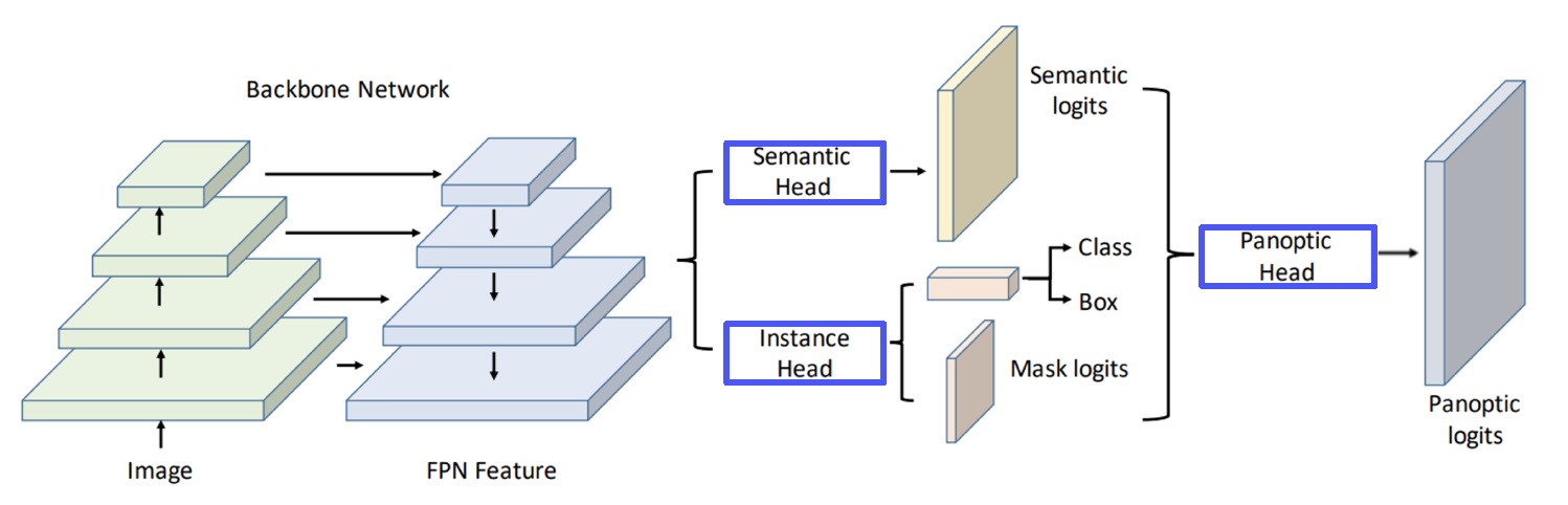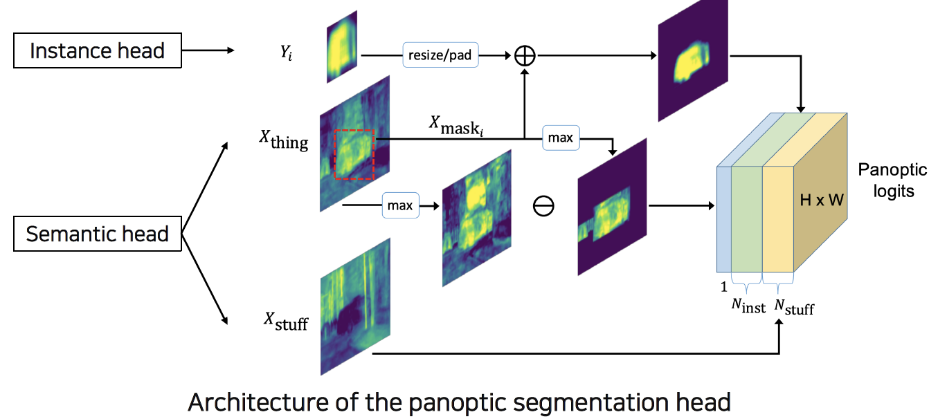 - Semantic & Instance head → Panoptic head → Panoptic logits