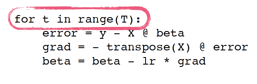- input: X, y, lr, T